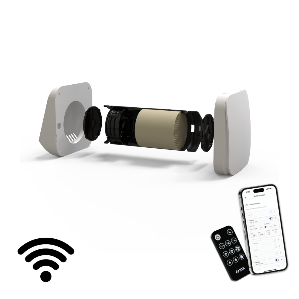 BSK Zephyr Mini – tai aukštos klasės mini rekuperatorius, sukurtas specialiai vonios kambariams, virtuvėms, drabužinėms ar kitoms nedidelėms erdvėms. Jis ne tik užtikrina šviežio oro tiekimą, bet ir išsaugo iki 90 % patalpų šilumos, sumažindamas energijos nuostolius šaltojo sezono metu. Tai išmani ir tvari alternatyva tradicinei ventiliacijai.